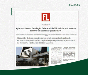 Na mídia: Após uma década de criação, Defensoria ainda está ausente em 89% das comarcas paranaenses