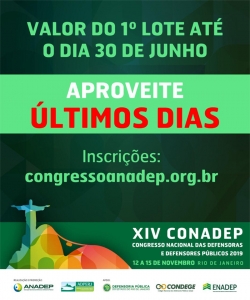 📢📢 Últimos dias!!! 📌Os interessados em participar do XIV Congresso Nacional dass Defensoras e Defensores Públicos têm até o dia 30 de junho para pagar as