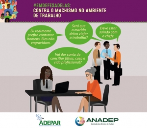 #Adepar #EmDefesaDelas #DireitodasMulheres#MulheresNoTrabalho #EducaçãoemDireitos #DefensoriaSim 🙅♀Um dos objetivos da Campanha #EmDefesaDelas é também o de combater o machismo no ambiente corporativo. Através de palestras, cursos e rodas de