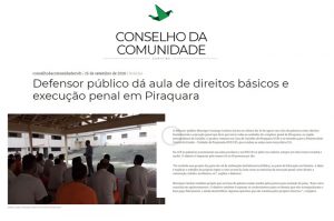 Na mídia: Defensor público dá aula de direitos básicos e execução penal em Piraquara