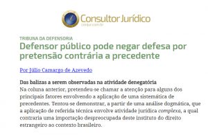 Artigo: Defensor público pode negar defesa por pretensão contrária a precedente