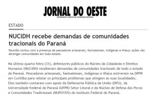 Na mídia: NUCIDH recebe demandas de comunidades tracionais do Paraná